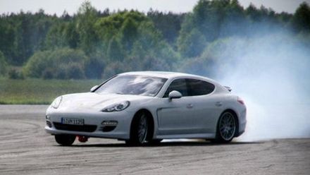 I jeszcze ostatnia próba na zakończenie całej imprezy. Niby proste, ale kilka bardzo istotnych zmiennych powoduje, że łatwo nie będzie. Test łosia. Wszyscy znacie, prawda? Podstawiono dwa modele – Panamera oraz 911 Carrera S. Z tylnym napędem. Uff. Słupki ustawione dość gęsto i co ważniejsze, dość ciasno. Standardowo wszystkie modele Panamera wyposażone są w rozbudowany system Porsche Stability Management (PSM), który utrzymuje stabilność samochodu nawet przy bardzo ostrej jeździe. Polega to na tym, że w każdej części sekundy czujniki monitorują kierunek, prędkość, bezwładność i boczne przyśpieszenie samochodu. Gdy coś jest nie tak, PSM rozpoczyna selektywne hamowanie poszczególnych kół i auto wraca na bezpieczny tor. Zatem, tyle teorii - do dzieła. Panamera, PSM włączony, prędkość około 90 km/h. Szybki ruch kierownicą w lewo i prawo. Udało się. Bez problemów. System zadziałał. Słupki nietknięte. Podejście numer dwa. Tym razem PSM wyłączone. Identyczna prędkość, identyczny manewr. O ile pierwszy ruch kierownicą był taki sam, o tyle powrót w słupki wyjazdowe wymagał szybkich kontr. Zaliczone. Teraz 911-ka. Prędkość nieco wyższa. Pogromczyni wielu kierowców…