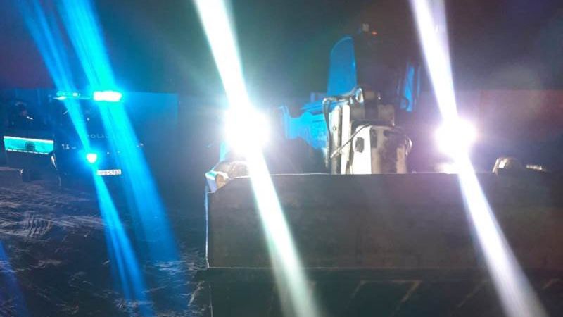 Miliccy policjanci otrzymali zgłoszenie dotyczące kierowcy ładowarki teleskopowej, który prawdopodobnie jest pod wpływem alkoholu. Na miejsce wysłano patrol, który szybko namierzył podejrzanego. Funkcjonariusze włączyli sygnały do zatrzymania, lecz mężczyzna nie zamierzał się poddać. Jechał dalej, gubiąc po drodze kawałki drewna przewożone na przedniej łyżce.