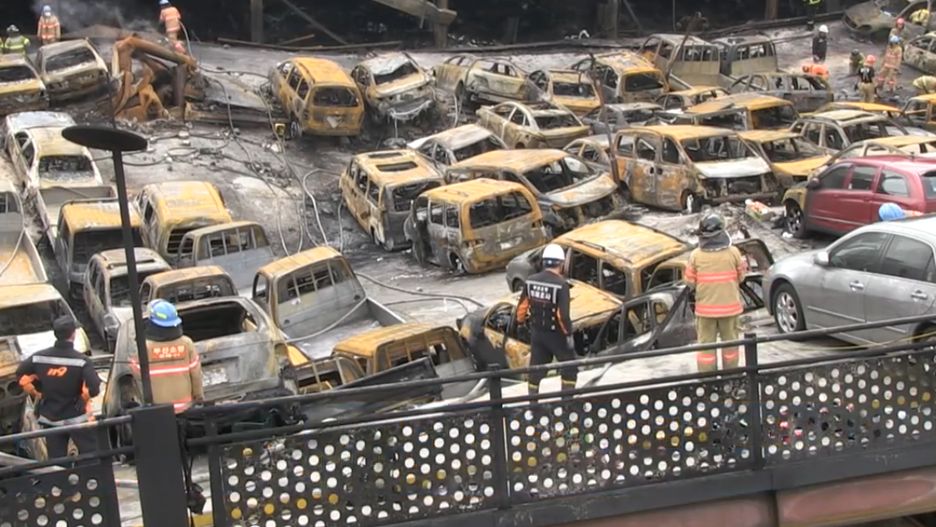 Pożar w koreańskim komisie pochłonął około 570 samochodów [WIDEO]