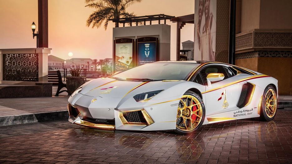 Biznesmen Jaber Bin Abdallah Al Hmaldi zamówił w firmie produkującej luksusowe dodatki ozdobienie Lamborghini Aventadora złotem.