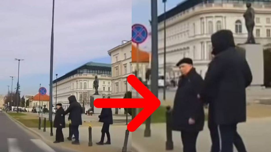 Na nagraniu widzimy, że jednym z pieszych jest Jarosław Kaczyński, który nie zwolnił kroku i mógł za chwilę znaleźć się pod kołami nadjeżdżającego samochodu. W ostatniej chwili został złapany za ramię przez osobę towarzyszącą. Kierowca zachował ostrożność i zwolnił, aby uniknąć ewentualnej kolizji z pieszym. Na szczęście nikomu nic się nie stało.
