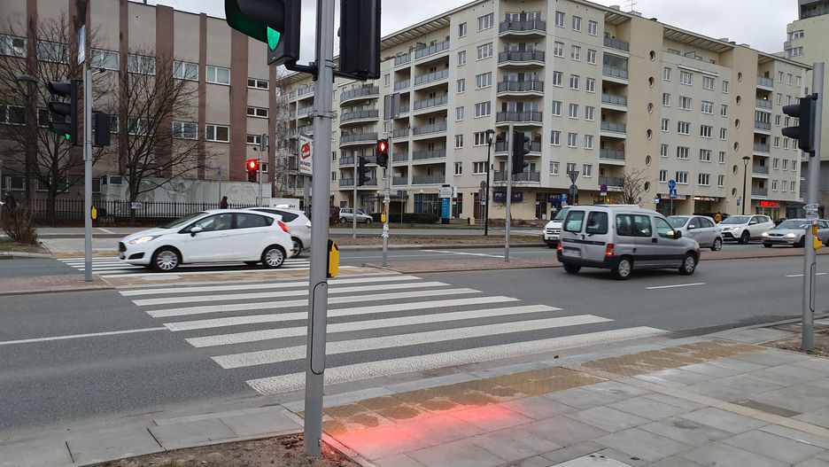 Na al. KEN w Warszawie pojawiły się nowe sygnalizatory, które mają zwiększyć bezpieczeństwo pieszych. Jeden z nich ma ratować osoby zapatrzone w smartfona. To pierwsze takie rozwiązanie w Polsce, ale pomysł nie jest nowy.