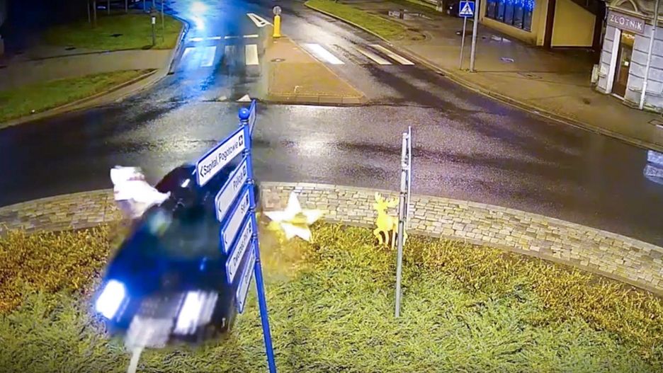Nowy rok ledwie się zaczął, a już mamy pierwszego kandydata na mistrza w spektakularnym pokonywaniu rond. To młody kierowca audi, który przeleciał przez skrzyżowanie, jakby go nie było. Skończyło się na punktach karnych i srogim mandacie.