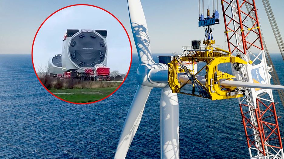 Przewozili jedną z największych turbin wiatrowych na świecie. Transport zajął całą drogę