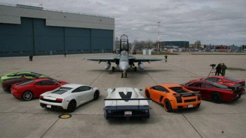 Impreza „Race the base” odbędzie się jutro i pojutrze w Kanadzie. Wśród największych atrakcji zaplanowano zawody z udziałem najszybszego Ferrari Enzo (860 KM dzięki biturbo) z CF-18 Fighter, czyli bardzo szybkiego myśliwca. Ta sama maszyna latająca zmierzy się później z samochodem Saleen S7 z podwójnym turbodoładowaniem. Celem tych zmagań jest przekroczenie przez pojazdy prędkości 300 km/h.