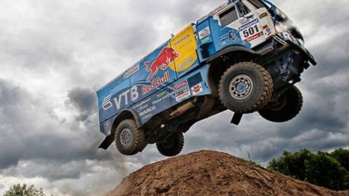 Jednak samo skakanie nie wszystkim wystarcza. Rosyjski zawodnik Alexey Kolesnikov miał pomysł, aby przeskoczyć nad dakarową ciężarówką - Kamazem Master Dakar Truck. Wielkim wyczynem to nie jest. Skakanie nad kilkumetrowym pojazdem/ przeszkodą nie jest niczym ambitnym. Dlatego postanowił, że Kamaz... również będzie skakać!