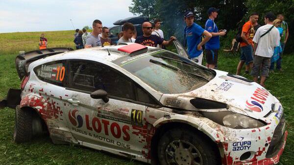 Gdy kierowcy pojechali dalej, Fiesta WRC Roberta stała na poboczu z urwanym tylnym, prawym kołem. Na pocieszenie Robert Kubica nie jest dziś jedynym kierowcą z urwanym kołem czy złamanym zawieszeniem. Walczący o zwycięstwo Mads Østberg pożegnał się z rajdem na 14. odcinku Gołdap. W jego DS3 WRC po uderzeniu w kamień wyszedł prawy, przedni amortyzator. Na tym samym oesie Jari-Matti Latvala uszkodził mocowanie amortyzatora do tego stopnia, że kolumna wyszła przez maskę. Lewe zawieszenie połamał Elfyn Evans. Odpadł po rolce Krzysztof Hołowczyc. Kris Meeke przebił oponę i straci prawie 3 minuty oraz dobra pozycję.