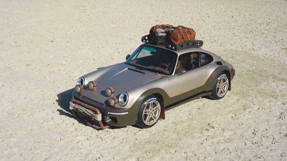 Nadwozie 911 ubrano w nietypowe połączenie kolorystyczne, bazujące na złocie i ciemnej zieleni. Prawdziwy klimat robią tu jednak dodatki w postaci bagażnika dachowego do przewozu skórzanych toreb, nadgryzionego zębem czasu orurowania czy dodatkowego oświetlenia, przydatnego podczas nocnej jazdy na trudnych trasach.