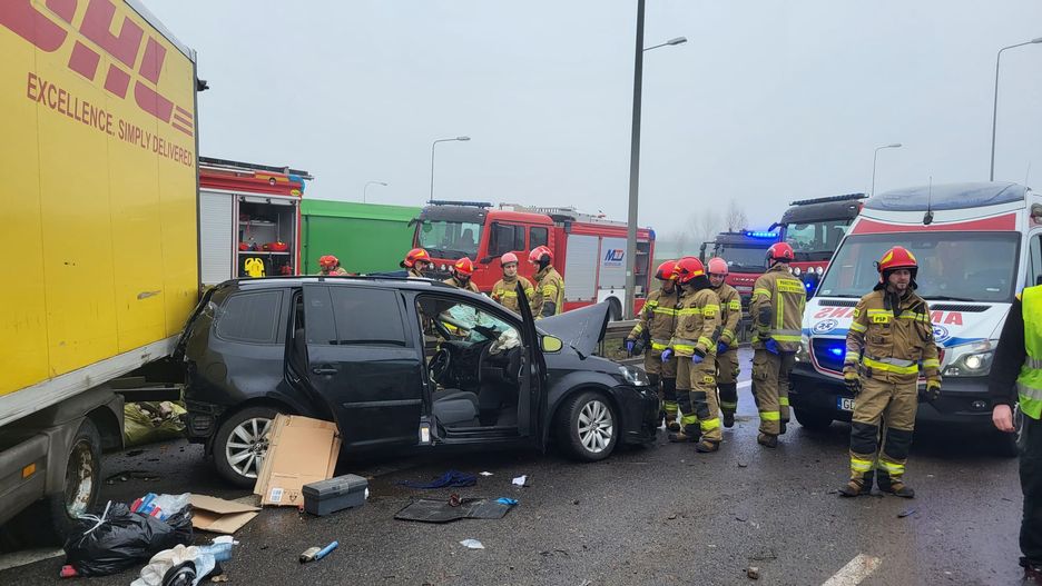 – Główna jezdnia zablokowana. Dwie osoby poszkodowane, w tym jedna ewakuowana z pojazdu przy użyciu sprzętu hydraulicznego – dodali strażacy.