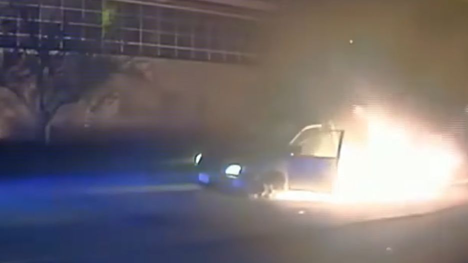 Incydent miał miejsce w Kenosha, mieście na północ od Chicago. Na jednej z ulic funkcjonariusze zobaczyli mężczyznę jadącego z przebitą oponą. Koło nagle stanęło w płomieniach, które szybko przeniosły się na resztę samochodu, gdy mężczyzna wciąż siedział za kierownicą. Policjanci podbiegli do pojazdu i wyciągnęli go w bezpieczne miejsce. Na szczęście w zdarzeniu nikt nie został poważnie ranny.