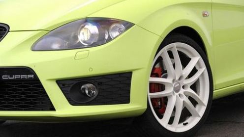 Jak wyglądają bardziej sportowe Seaty? Otóż wersja FR jest w zasadzie niezmieniona, następna w drabince Cupra to już przedsmak tego, na co można liczyć w przypadku najmocniejszej Cupry R! Stylistyka to w zasadzie rozwinięcie linii nieco słabszej Cupry. Auto robi wrażenie - nie tylko bardziej agresywnymi zderzakami, ale przede wszystkim wielkimi 19-calowymi, 10-ramiennymi obręczami Potenza. Z nich wystają potężne, również specjalnie wzmocnione tarcze hamulcowe. Do tego oczywiście jeszcze garść emblematów informujących, z czym mamy do czynienia.