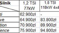 Model Yeti będzie oferowany w sprzedaży w Polsce już od jesieni 2009. Poniżej cennik wraz z dostępnymi opcjami silnikowymi: