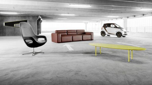 Wnętrze nawiązuje kolorystyką do kolekcji smartville opracowanej przez BoConcept, inspirowanej stylistyką Smarta ForTwo. W jej skład wchodzą m.in. zegary, sofa, fotel, stolik i poduszki.