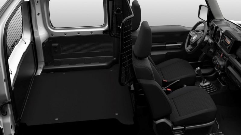 Dwuosobowe Jimny będzie wyposażone w kratę oddzielającą przestrzeń pasażerską od bagażowej, zgodnie z homologacją ciężarową N1. Dzięki temu pojemność bagażnika zwiększy się do 863 litrów. Bezpieczniej będzie wozić cięższe przedmioty. Poza nieznacznym zwiększeniem ładowności - prawdopodobnie - Jimny nie straci żadnych walorów użytkowych. Ma mieć ten sam napęd i zdolności terenowe.