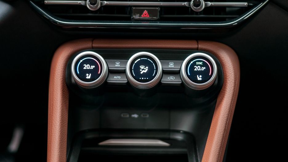 Zewnętrzne pokrętła kontrolują temperaturę wnętrza, ogrzewanie i wentylację siedzeń. Użytkownicy mogą przechodzić między tymi funkcjami, naciskając pokrętło, co powoduje przełączanie informacji na wbudowanym ekranie. Centralne pokrętło jest jeszcze bardziej wszechstronne, umożliwiając regulację prędkości wentylatora, kierunku powietrza, klimatyzacji, głośności, trybów jazdy i powiększania mapy.