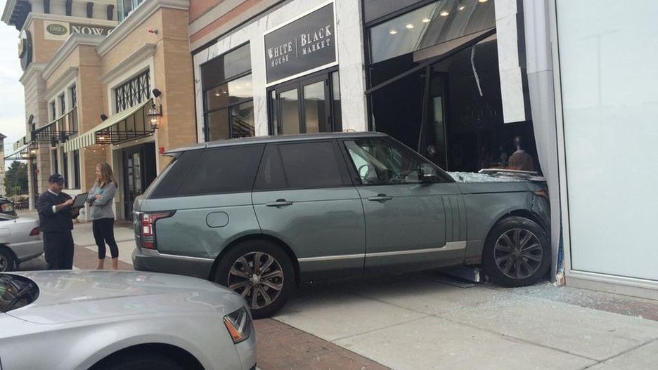 Widoczny na zdjęciu Range Rover wjechał w witrynę butiku White House Black Market w centrum handlowym pod Bostonem.