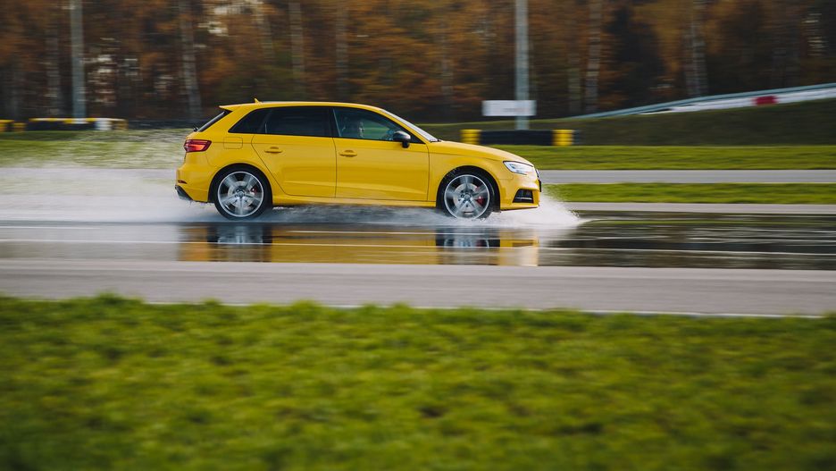 Continental dominował w teście aquaplaningu na prostej, zachowując przyczepność aż do prędkości 98,1 km/h, podczas gdy Goodtrip tracił kontrolę już przy 88,2 km/h. Z kolei w zakręcie najlepiej z aquaplaningiem radziło sobie ogumienie Pirelli (wynik przeciążenia 2,6 m/s²), a najsłabiej - co ciekawe - Falken (2,27 m/s²), mimo doskonałych wyników w innych testach na mokrym.