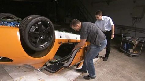Każdy nowy samochód, nawet najdroższe produkcje Ferrari czy Lamborghini, muszą być poddawane testom oceniającym stopień oferowanego w nich bezpieczeństwa. Także jeszcze cieplutki Mercedes SLS AMG został wprowadzony do specjalnego garażu, gdzie najpierw wypróżniono z niego wszystkie płyny, aby później rozbić go z wdziękiem o betonowy blok. Jakby tego było mało, auto miało także symulację dachowania.