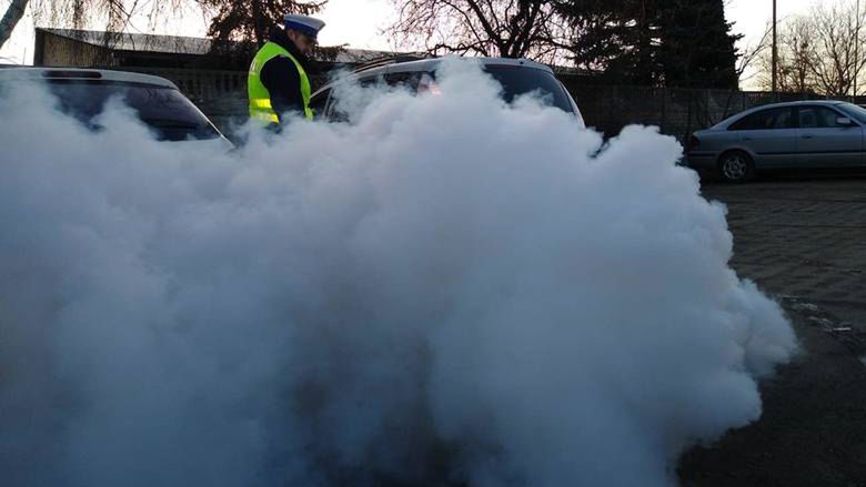 Policjanci wielkopolskiej drogówki zatrzymali dowód rejestracyjny mazdy, która tak "dymiła", że ledwie można było zobaczyć samochód. Pojazd będzie musiał przejść badanie techniczne, by właściciel nadal mógł go użytkować.