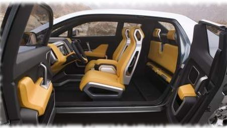 Jeśli chodzi o wnętrze to na uwagę zasługuje bezprzewodowe połączenie Wi-Fi do łączenia się z internetem. Zadbano również o miejsca dla pasażerów, jednak te mogą być łatwo złożone w celu powiększenia miejsca na pace. Moim zdaniem koncept bardzo trafiony, jednak obawiam się, aby czasem te słoneczne promienie go nie zgubiły. Wszakże nietoperz ("bat" to z angielskiego nietoperz) czerpiący energię słoneczną nie wróży nic dobrego...