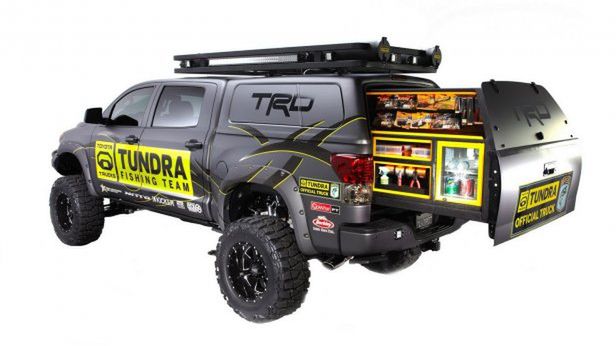 Konstrukcja na dachu ma baterię diod LED oraz pojemniki umożliwiające przechowywanie wędek. Cały tył Tundry służy jako wysuwany schowek na wszelkiego typu akcesoria wędkarskie. Zamontowano tam również lodówkę.