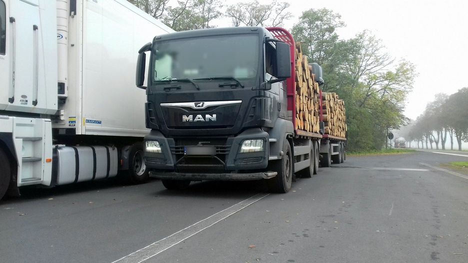 Ciężarówką i podłączoną do niej przyczepą przewoził bale drewna bez żadnego zabezpieczenia. Gwałtowne hamowanie mogłoby doprowadzić do ich wysypania na drogę, czym kierowca narażał na niebezpieczeństwo nie tylko swoje życie, ale i innych uczestników ruchu drogowego. Spotkanie z inspektorami zakończyło się wydaniem zakazu dalszej jazdy do czasu przeładunku źle rozmieszczonego drewna i mandatem karnym dla kierowcy.