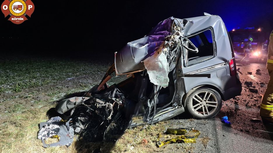 Jako pierwsi na miejscu wypadku pojawili się strażacy z OSP Kórnik. Niestety, siła uderzenia była tak duża, że przód i bok volkswagena zostały zmiażdżone. Kierowca osobówki doznał rozległych i widocznych obrażeń, w związku z czym służby odstąpiły od czynności ratunkowych. Obecny na miejscu lekarz stwierdził zgon mężczyzny.