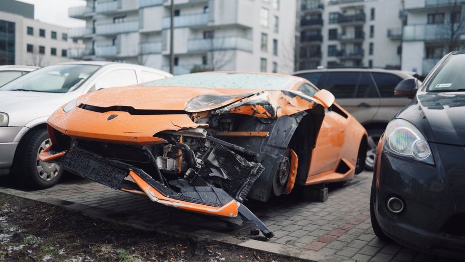 Na jednym z warszawskich parkingów stoi uszkodzone lamborghini huracán. To samochód, który został rozbity 15 stycznia na ul. Wolskiej. Sprawca zniknął. Podobnie jak stopniowo znikają kolejne części włoskiego superauta - smutny widok.
