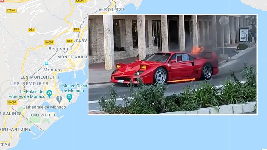 Ferrari F40 on fire at Monaco