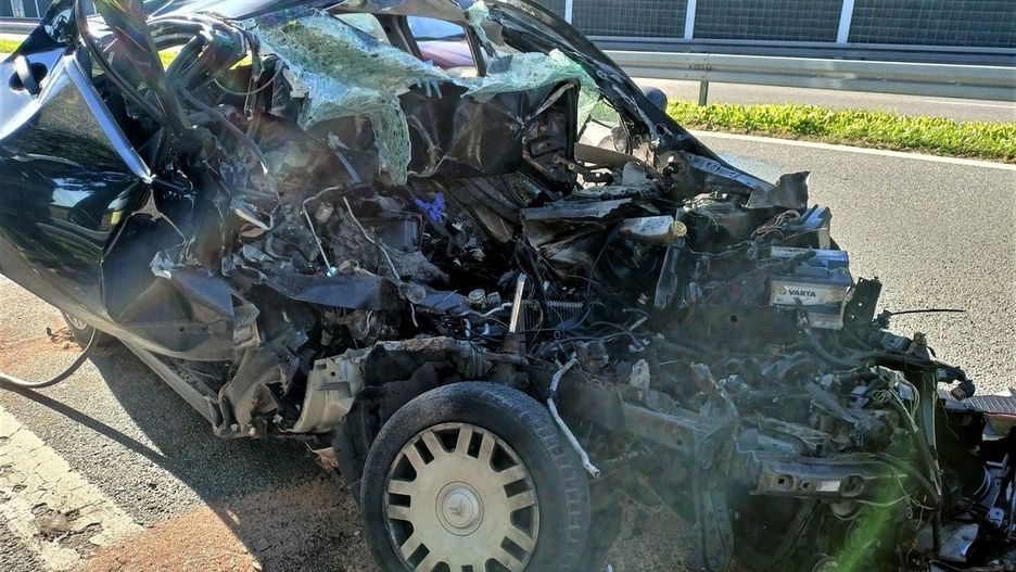 Do kolizji, której skutki na pierwszy rzut oka łatwo nazwać przerażającymi, doszło w Orzeszu, na nitce drogi krajowej nr 81 prowadzącej do Katowic. Kierowca miejskiego citroëna C2 zmieniał pas, ale nie zauważył stojącej na nim ciężarówki, choć ta była oznakowana trójkątem ostrzegawczym. Małe francuskie auto wjechało w naczepę tira.
