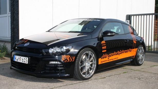 Scirocco R GT-Rsp ma gwintowane zawieszenie KW z amortyzatorami o regulowanej charakterystyce tłumienia. Tuner obniża auto o 45 mm, ale każdy może zmienić te ustawienia. 19-calowe koła ATS Dunlop o rozmiarze 235/35 R 19 są lżejsze od fabrycznych, co korzystnie wpływa na prowadzenie Volkswagena.