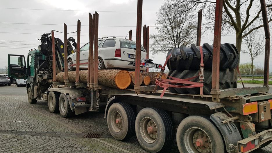 Co niecodziennej sytuacji doszło w połowie kwietnia na niemieckiej autostradzie A7. Zaniepokojeni kierowcy zawiadomili policję, która zatrzymała 48-letniego tirowca, przewożącego skodę na balach drewna. A to nie była jedyna nieprawidłowość.