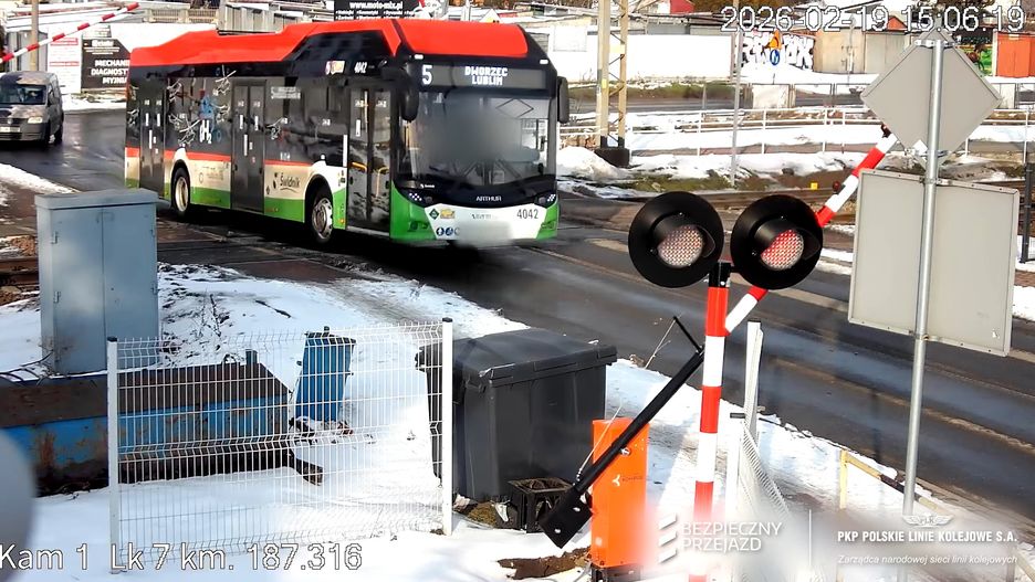 Być może to przyczyniło się do podjęcia przez kierowcę autobusu złej decyzji. Mężczyzna ruszył i trzy sekundy później rozpoczęło się zamykanie zapór. W ten sposób autobus został pomiędzy rogatkami a torami. Sytuacja zaczęła przybierać bardzo niebezpieczny bardzo niebezpieczny obrót. Na szczęście kierowca autobusu zorientował się, że zmieści się pomiędzy szlabanami i opuścił przejazd przed nadjechaniem pociągu towarowego.