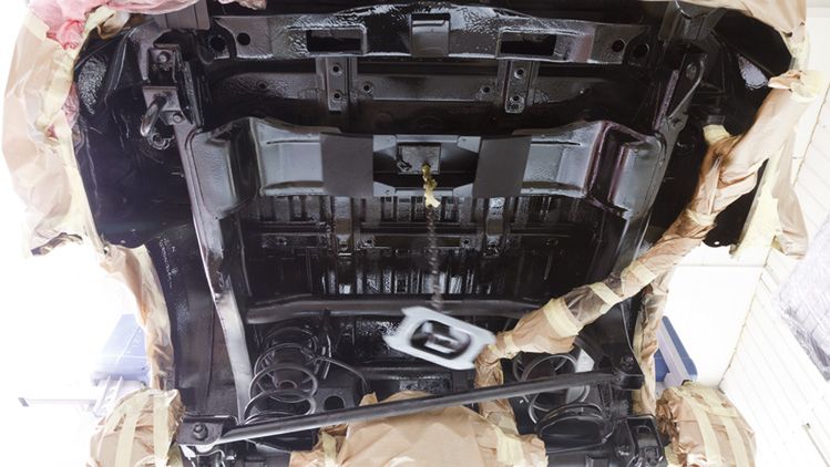 Gdy nadwozie jest już wstępnie zabezpieczone, pora zabezpieczyć także podwozie pojazdu. Powszechne jest używanie np. warstwy PCV, która jest natryskiwana bezpośrednio na podwozie. Ma ona chronić blachę przed uszkodzeniami mechanicznymi i tłumić dźwięki.