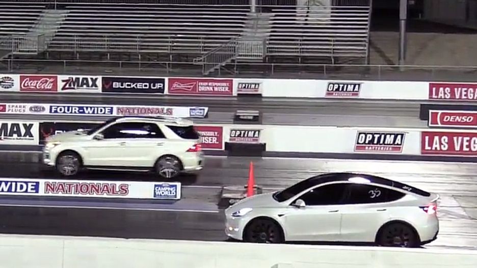 Podczas wydarzenia, które miało miejsce w Las Vegas w maju bieżącego roku, jedną z atrakcji były wyścigi na prostej. Na starcie jednego z pojedynków stanęły obok siebie Tesla Model Y oraz Mercedes GLE w wersji AMG. Gdy zgasły zielone światła, kierowca mercedesa wystrzelił przed siebie, za to tesla… cofnęła się z linii startu. Kierowca najzwyczajniej w świecie wrzucił wsteczny bieg.