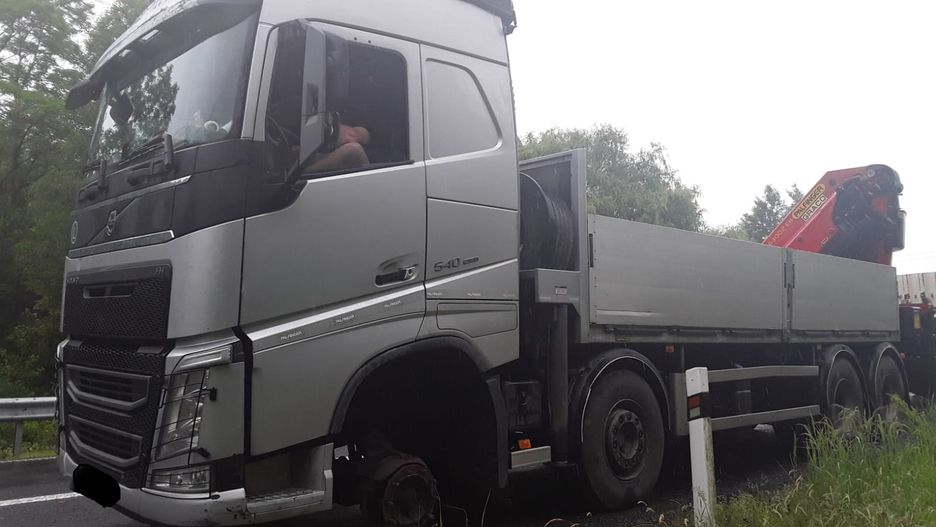 Zdumiewające zachowanie kierowcy. Jechał TIR-em bez koła